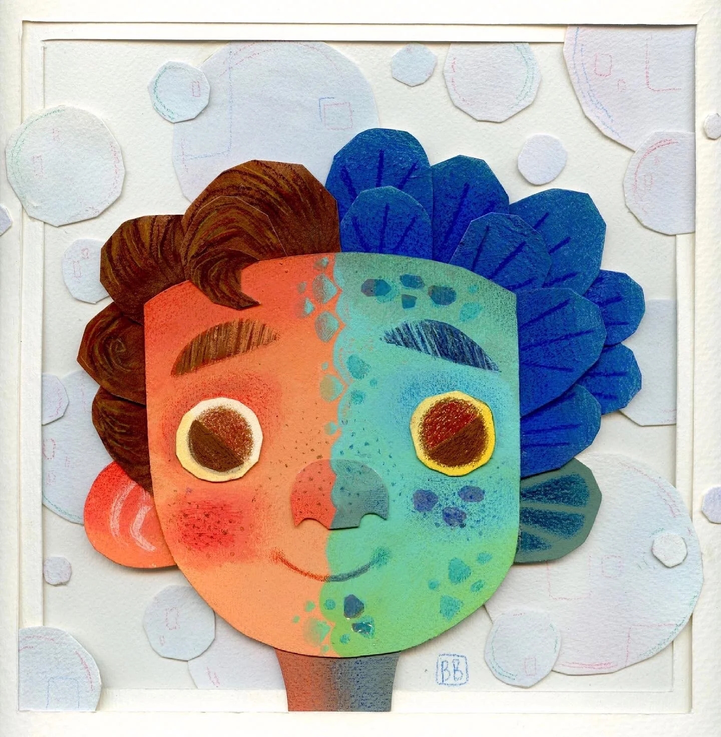 Luca Fan Art created using cut paper, gouache, and colored pencil.